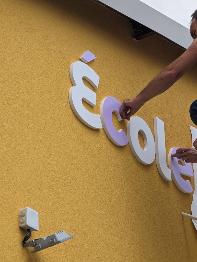 Identité visuelle, création et réalisation de lettrines pour l'enseigne d'un bâtiment